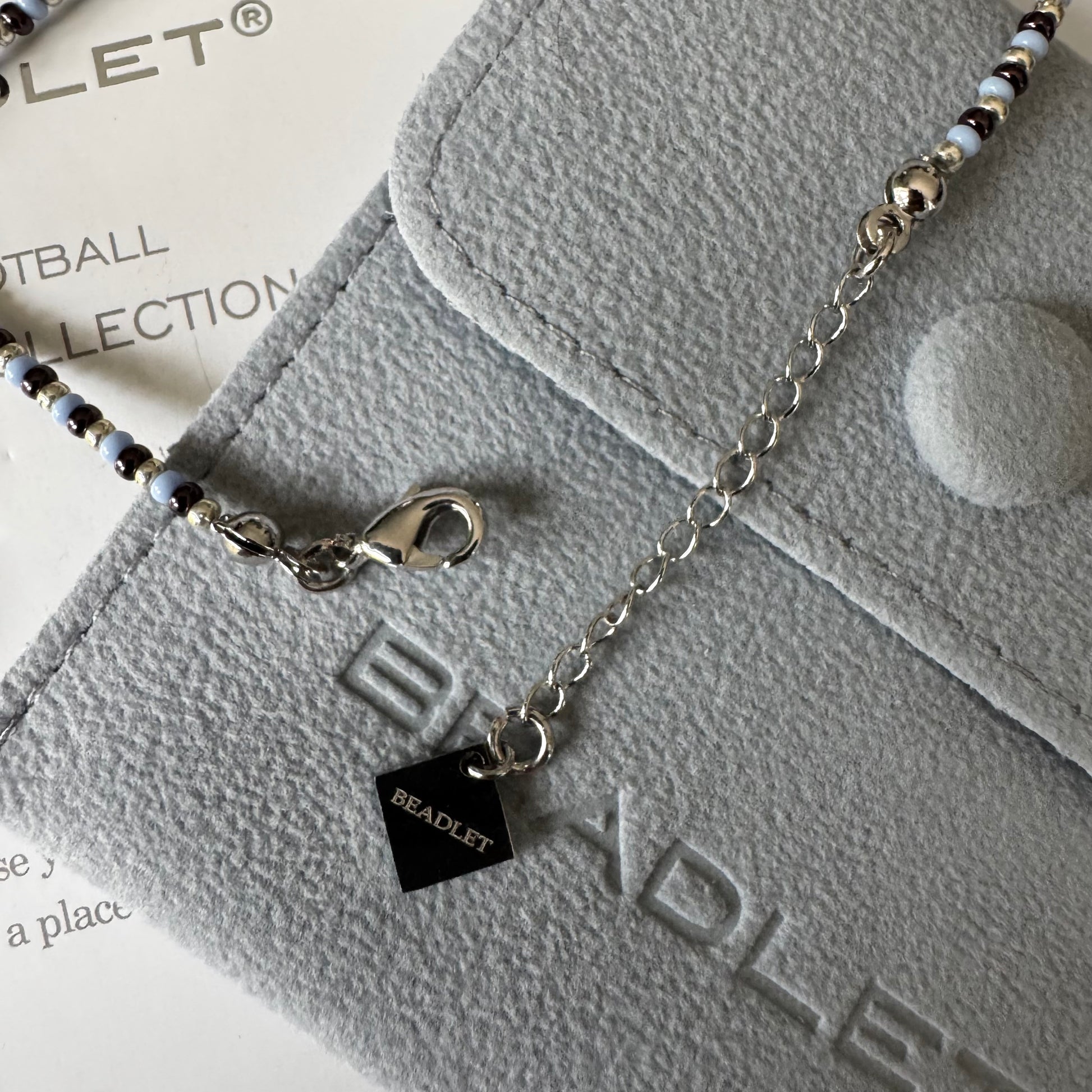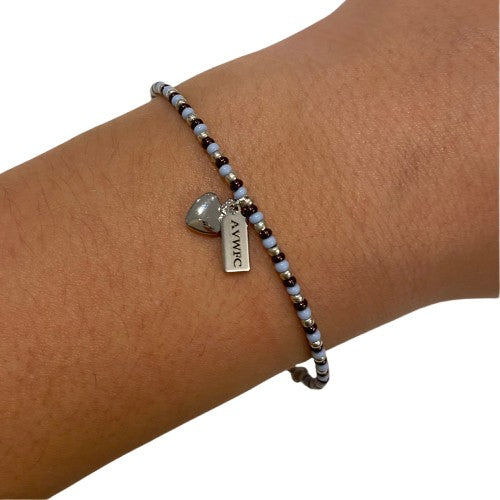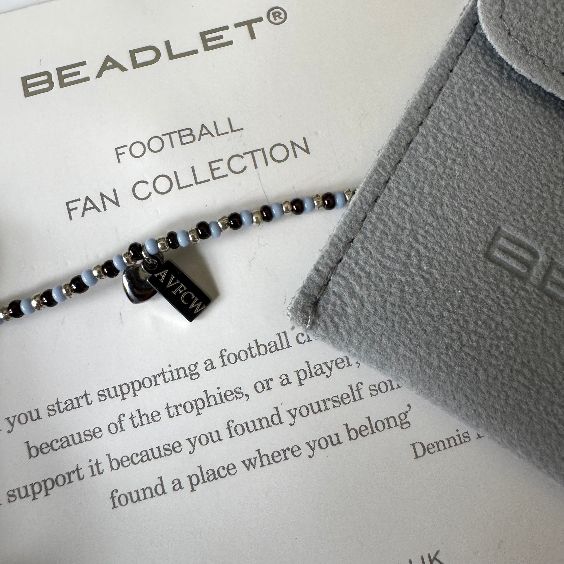 A beautiful hand crafted Football Fan seed bead bracelet in Aston Villa Women FC colours. Made from quality Czech Preciosa glass beads and enhanced with a subtle AVWFC and heart charm.