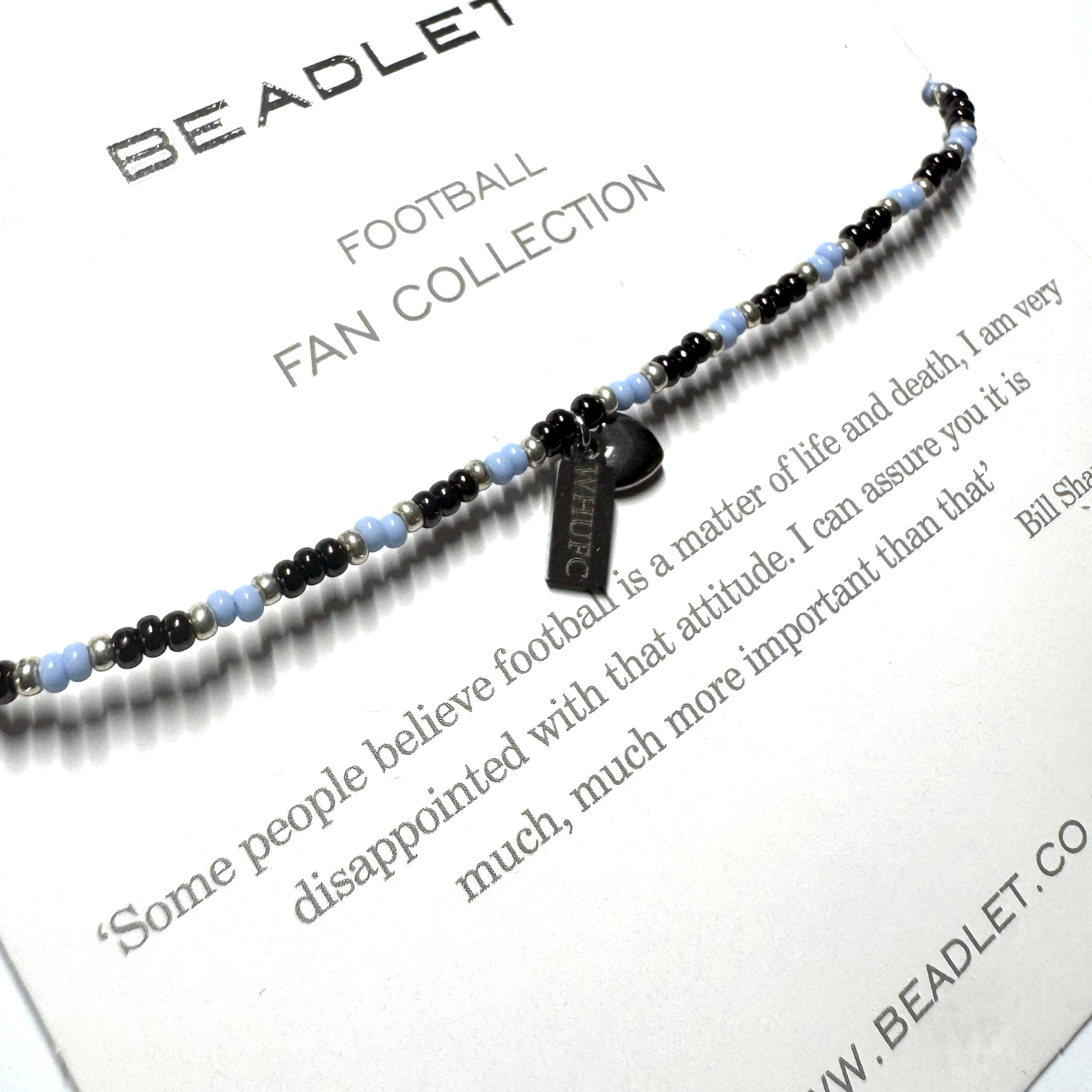 A beautiful hand crafted Football Fan seed bead bracelet in West Ham colours. Made from quality Czech Preciosa glass beads and enhanced with a subtle AFC and heart charm.