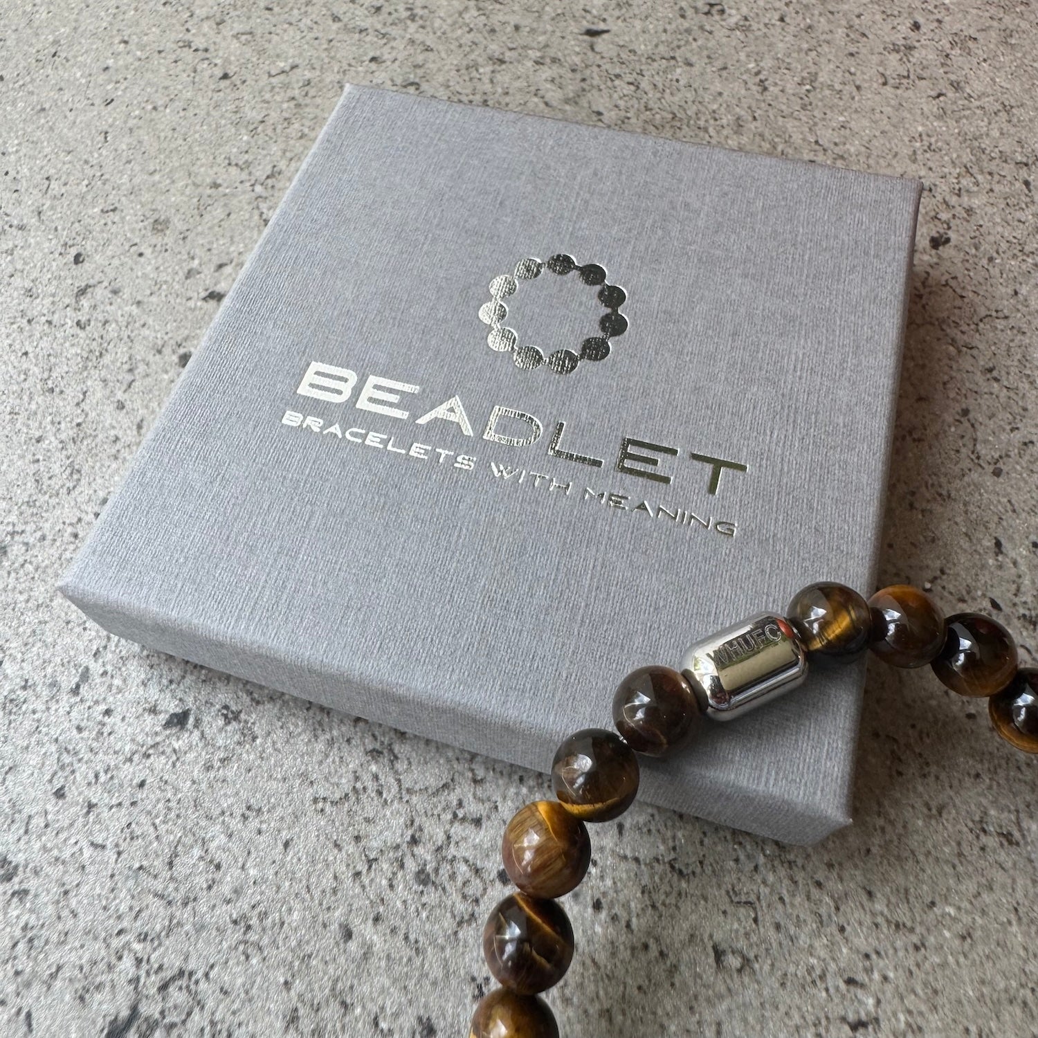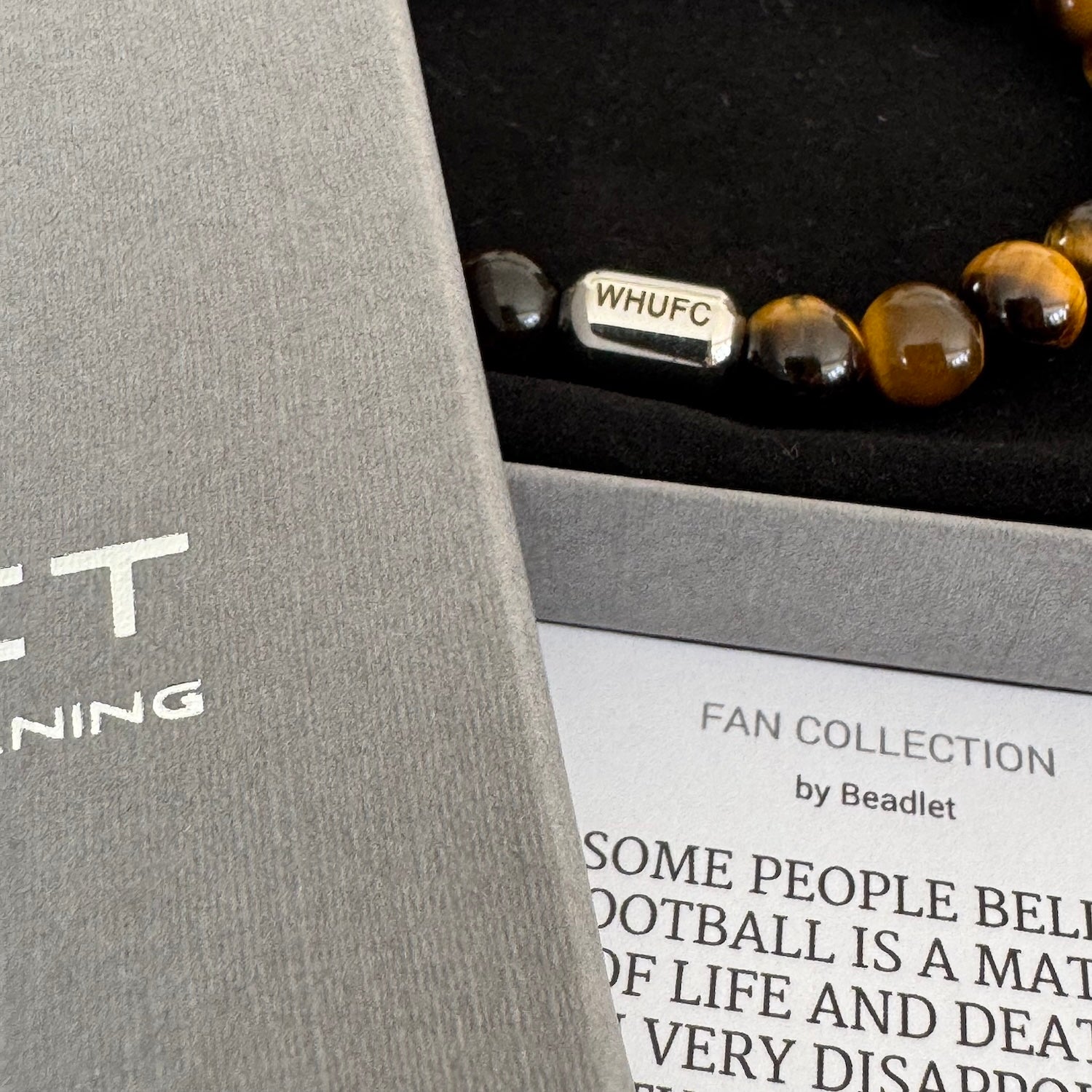 Our Unique Tiger Eye Beaded Bracelet is uniquely designed 8mm polished stone beads and a WHUFC brass bead.