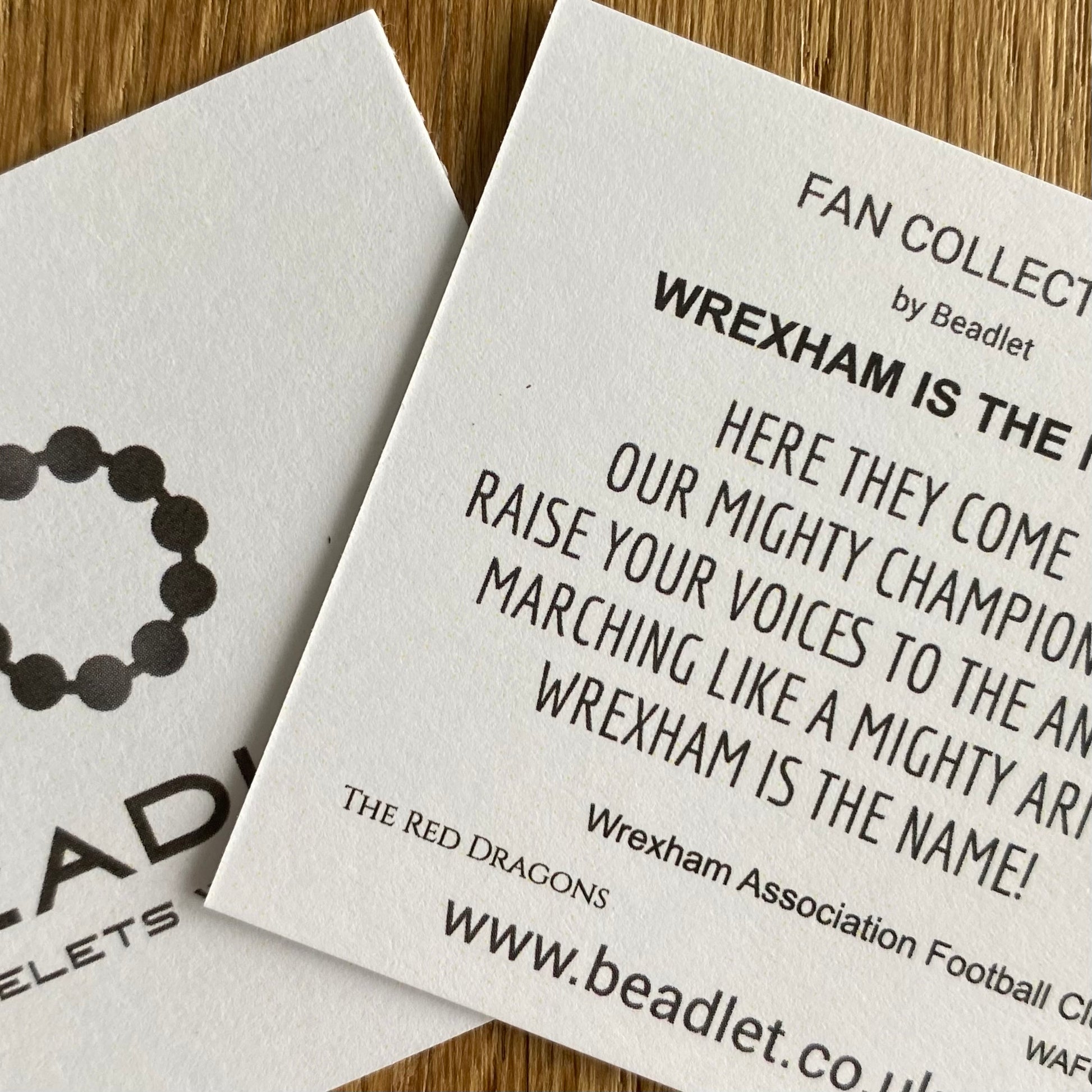 Our unique design Beadlets are presented on a fan card with a handy faux suede pouch for storage and make the perfect gift or ultimate treat for any Wrexham fan. Alternatively, add that wow factor with our premium gift box and Wrexham Is The Name Fan card.